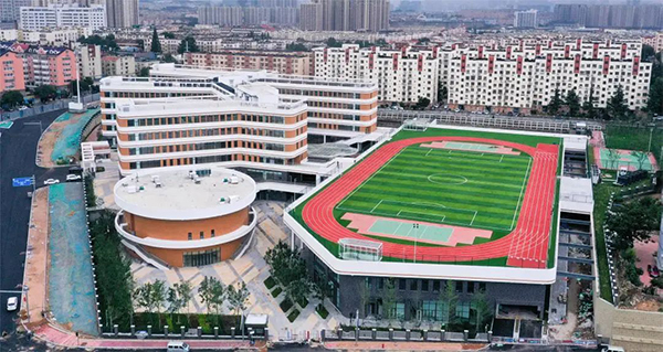 青島君峰路中學地下室為一個整體,地上結構通過抗震縫分為教學樓、風雨操場及報告廳共三個結構單元,總建筑面積約69198㎡,總用鋼量為9347噸。項目以“十年樹木、百年樹人”為設計主題, 創造人性化、公園式的校園環境,構建“主動學習”的積極趣味空間。