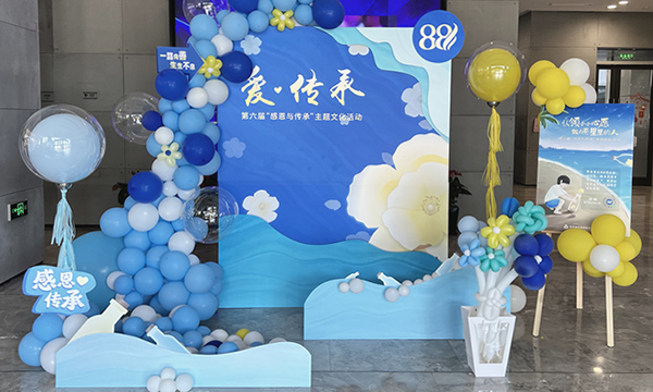 七年來,“感恩與傳承”主題文化活動成為了龍元企業文化的重要載體。在第四屆“感恩與傳承”主題文化活動上,集團將“愛·傳承”定為主題,倡導龍元人常懷感恩之心,將用公益行動回饋社會大眾,傳承大愛。自此開始,“愛·傳承”的主題也一直延用了下來,今年主背景板設計了“海上花開”的形象,也寓意著龍元“一路向善,生生不息”。