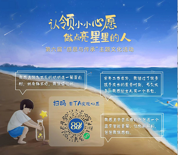 8月8日當天,“心愿漂流瓶”通過小程序正式公布,很快獲得了大家的積極響應:集團多位高管帶頭支持,機關員工、項目經理以及下屬單位也紛紛行動,通過個人或集體的名義獻上愛心。