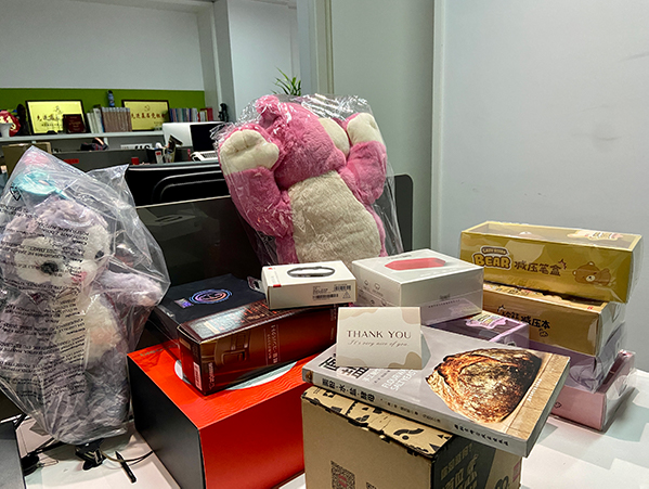 送給奶奶的保健品,送給父母、妻子的按摩儀、送給父親的剃須刀、還有給孩子們的文具、書籍、籃球……愛心物品陸陸續續從同事們手中送來,又很快踏上了前往工人們家中的道路。