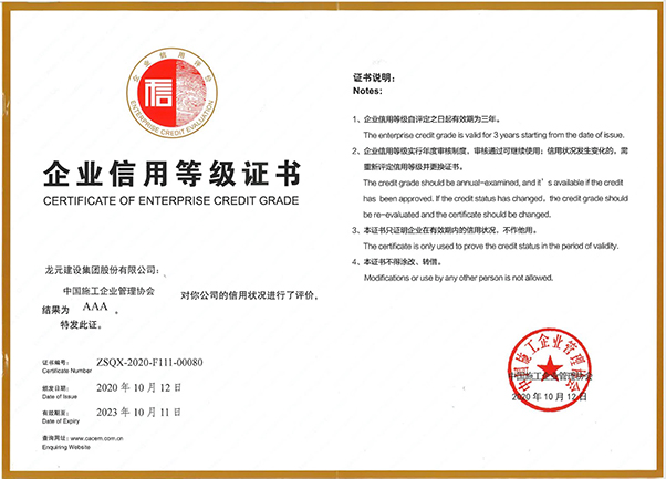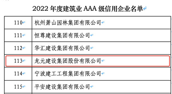 龍?jiān)ㄔO(shè)集團(tuán)獲評(píng)2022年度建筑業(yè)AAA級(jí)信用企業(yè)