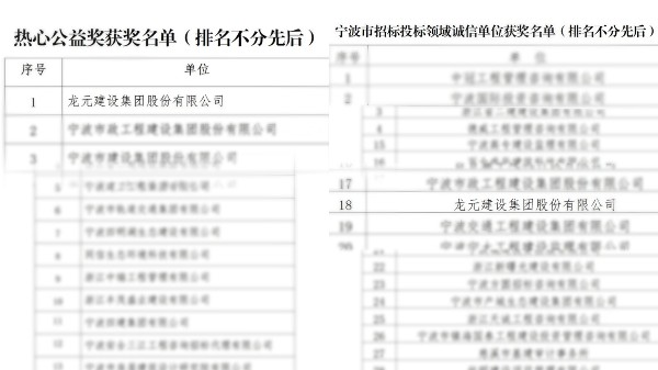 龍元建設(shè)集團榮獲“寧波市招標投標領(lǐng)域誠信單位”等榮譽